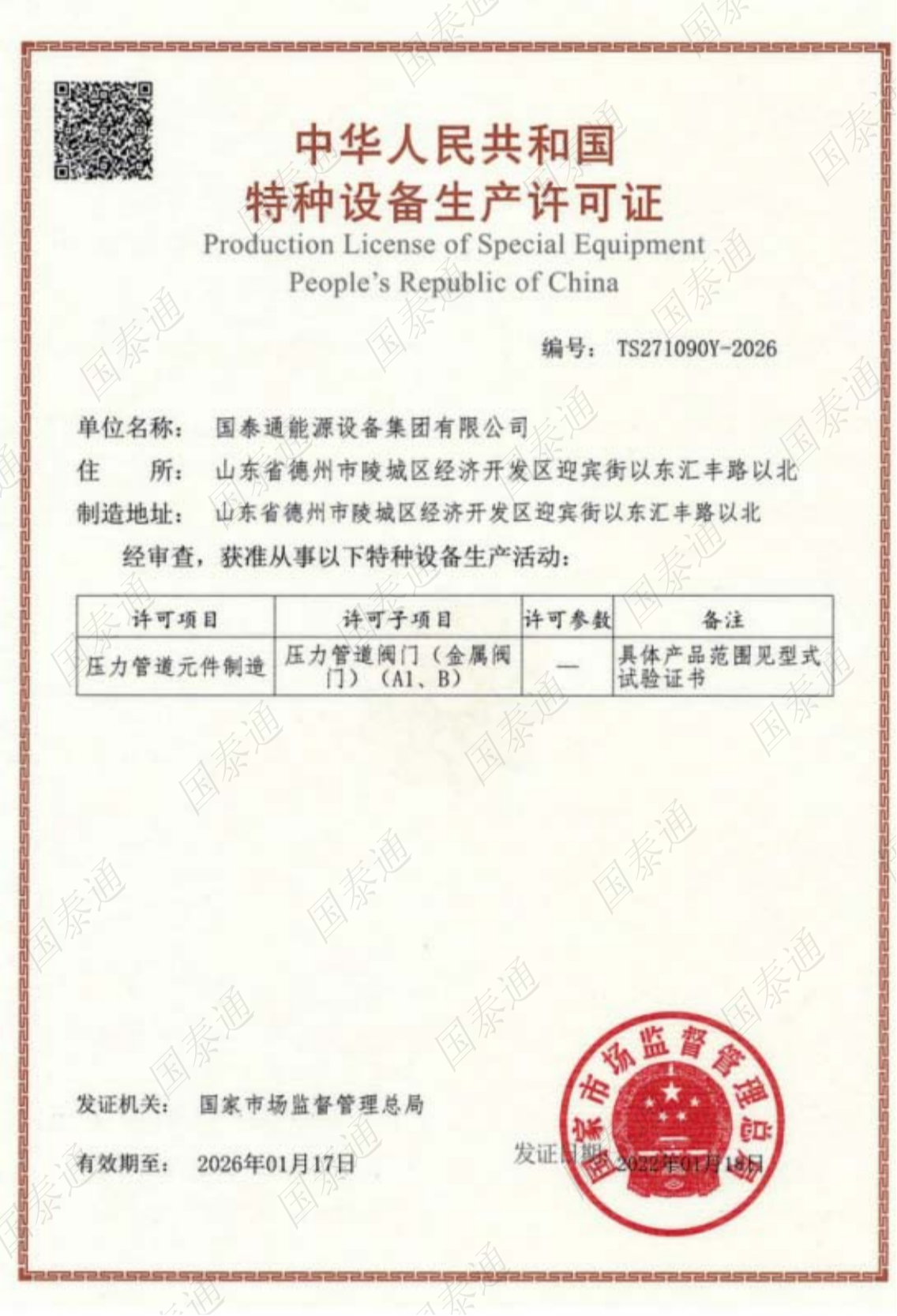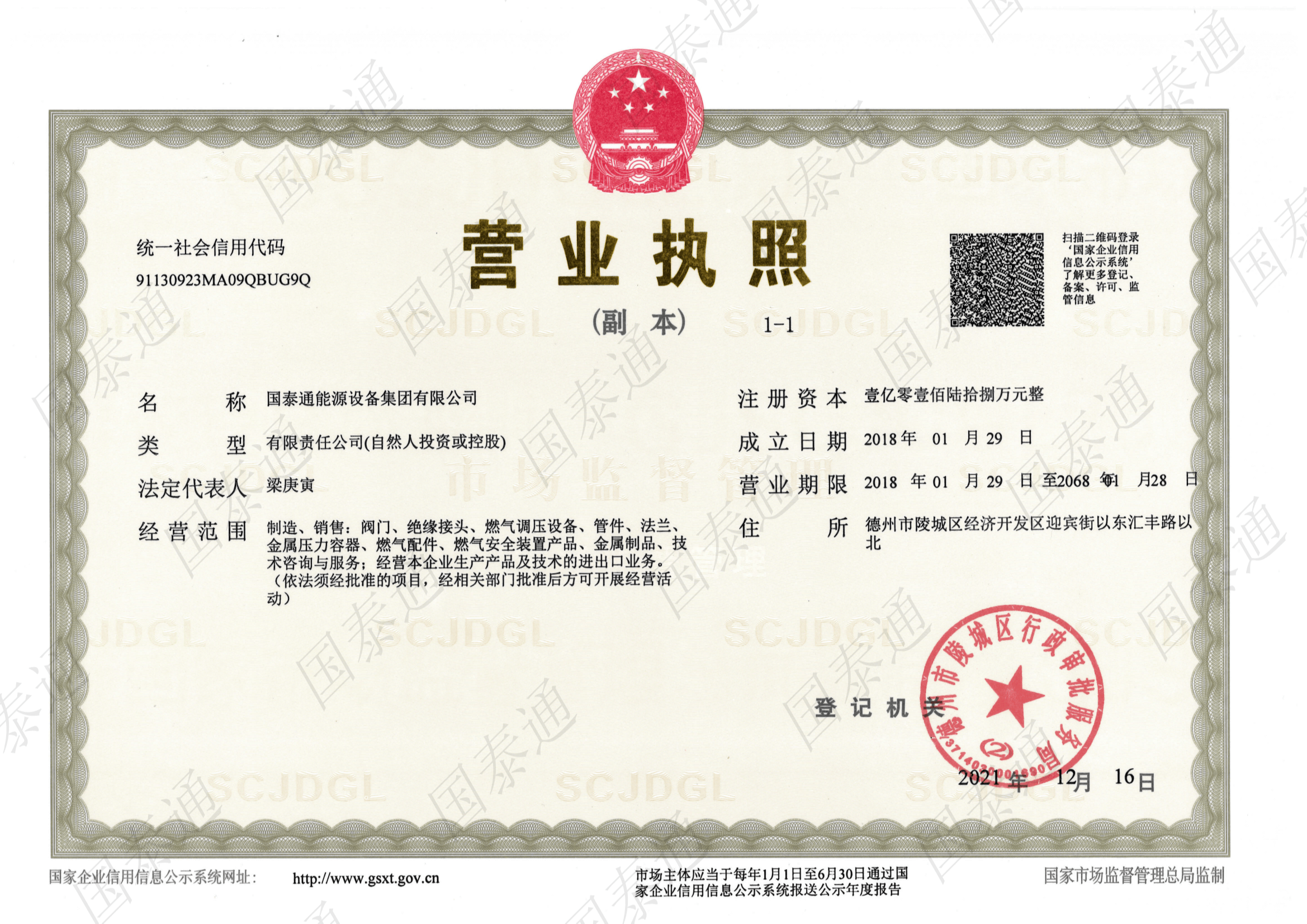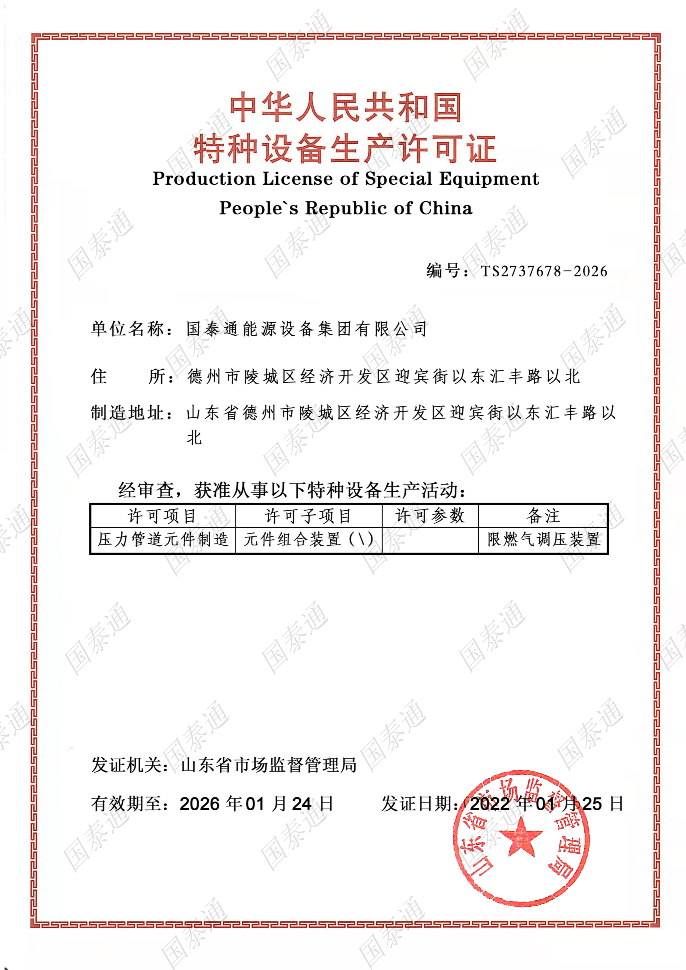 國泰通能源設備集團有限公司是一家國家級高新技術企業(yè),專注于閥門和燃氣調壓輸配設備設計、研發(fā)、生產、銷售、服務于一體的系統(tǒng)集成解決方案服務商。公司成立于2011年,注冊資金10168萬元,擁有北京運營中心和山東生產中心兩大基地,北京運營中心主要承擔集團公司的戰(zhàn)略規(guī)劃發(fā)展,山東生產基地承擔集團公司產品研發(fā)、生產和銷售服務,集團公司山東生產基地占地面積5萬余平方米,總建筑面積3萬余平方米,有著現(xiàn)代化的廠房和辦公大樓。集團公司經過十多年的茁壯發(fā)展,現(xiàn)擁有中、高級工程師27名,生產服務技術人員二百余人......